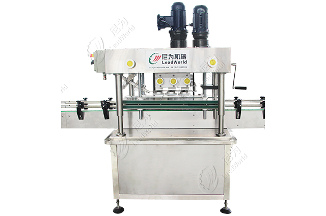 灌裝完成后就是旋蓋封口,尼為自動上蓋旋蓋機(jī)采用直線式進(jìn)瓶、自動落蓋的方法,可連續(xù)上蓋、旋蓋,提高了上蓋速度,適合大產(chǎn)量生產(chǎn),機(jī)器調(diào)節(jié)也很方便。